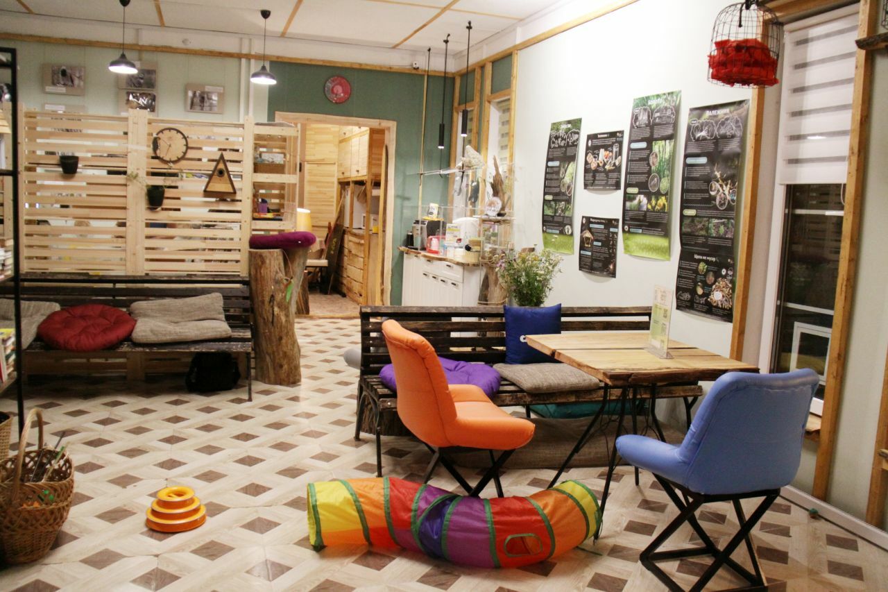Большая часть мебели, настольных игры и элементов интерьера сделана из остатков натурального дерева, которое когда-то росло в нашем парке.